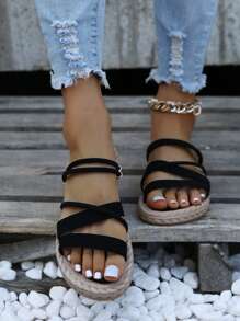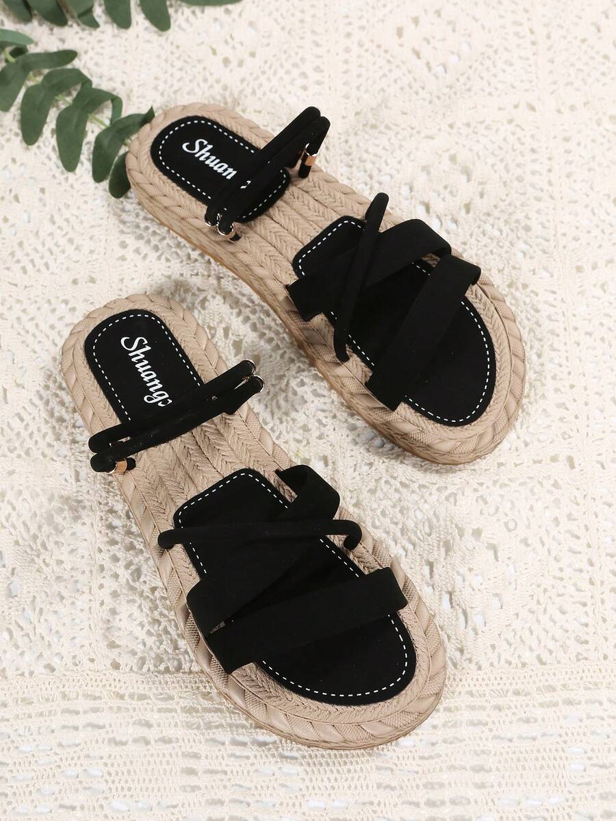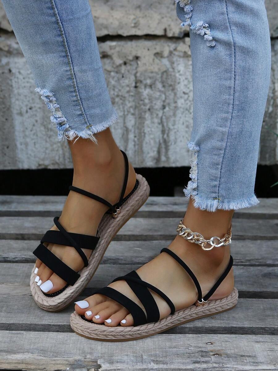 Damen Sandalen mit Criss Cross Riemen aus Wildlederimitat, vielseitig einsetzbar, minimalistische flache Outdoor Sandalen