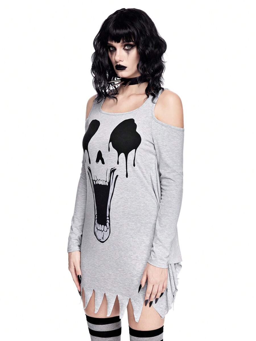 ROMWE Avant Damen Halloween Kostümkleid mit Geistgesicht-Muster, Schulterfrei, gezacktem Saum und Flügel-Dekor