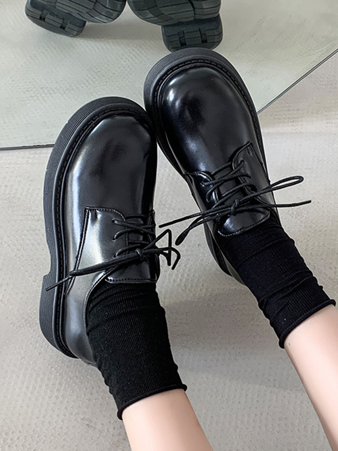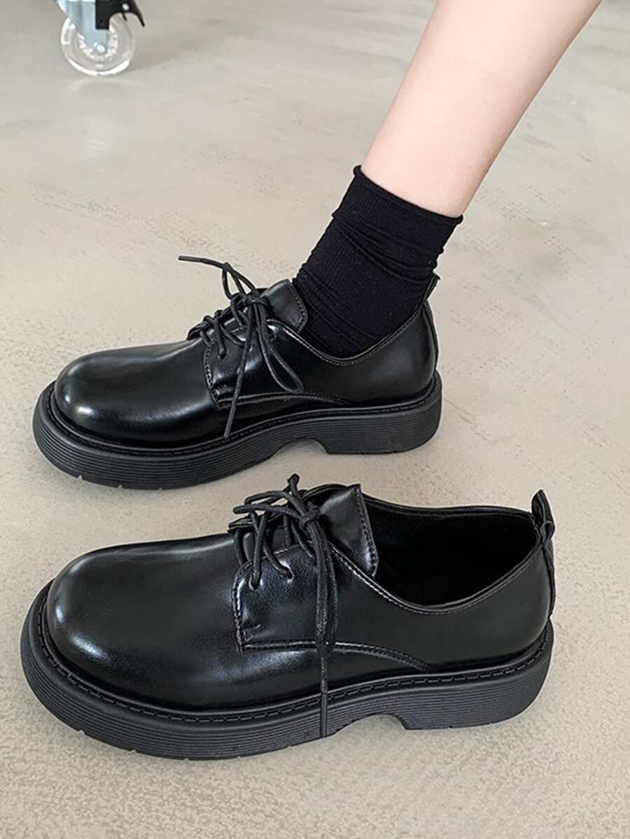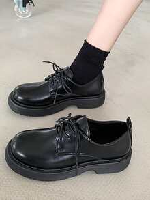 Minimalistische Schnürschuhe für Damen, Preppy schwarze Oxford-Schuhe