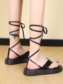 Minimalistische Riemchensandalen für Damen, modische schwarze flache Sandalen