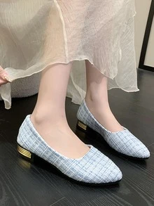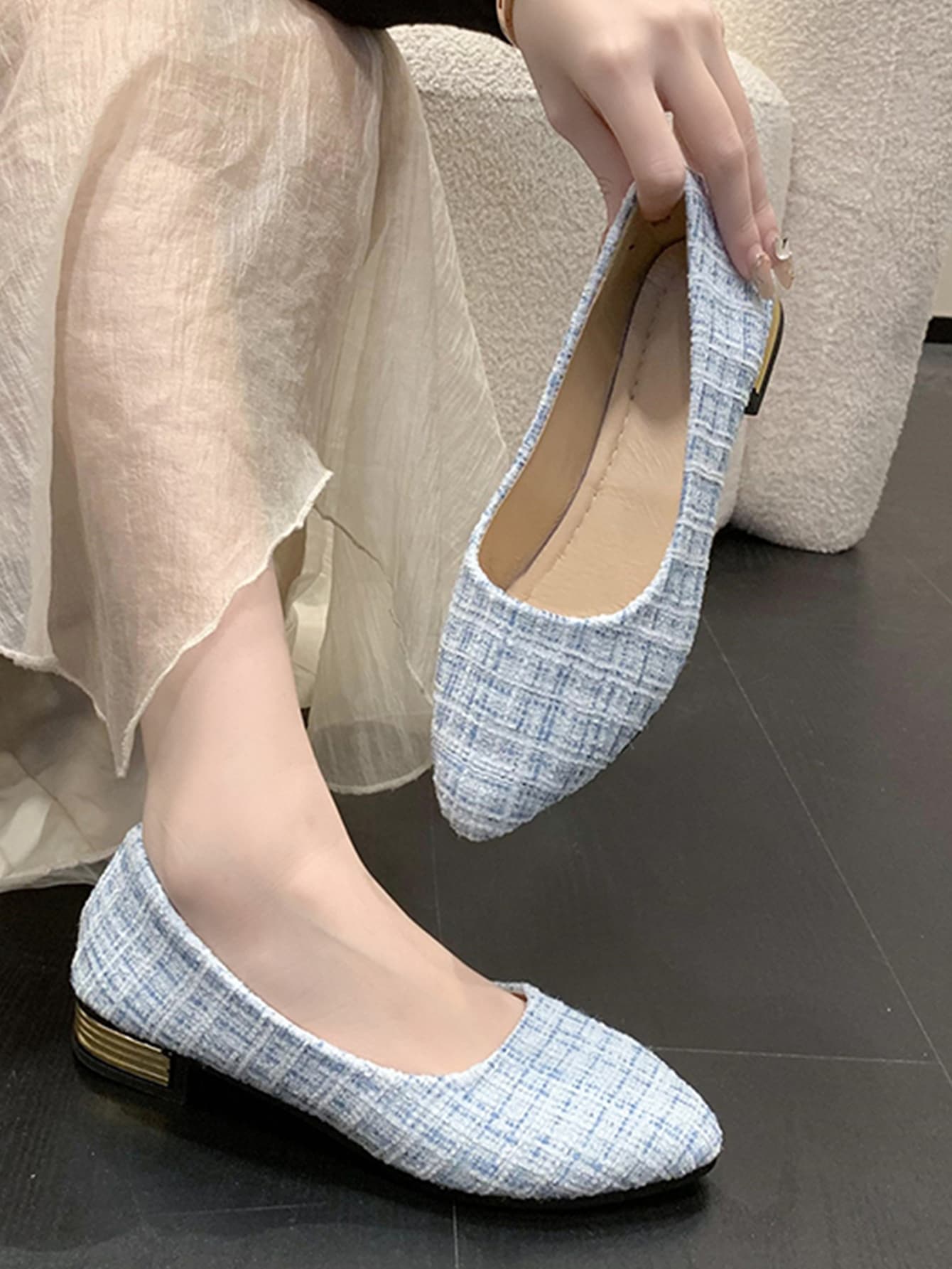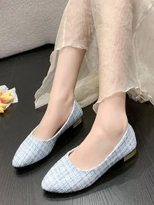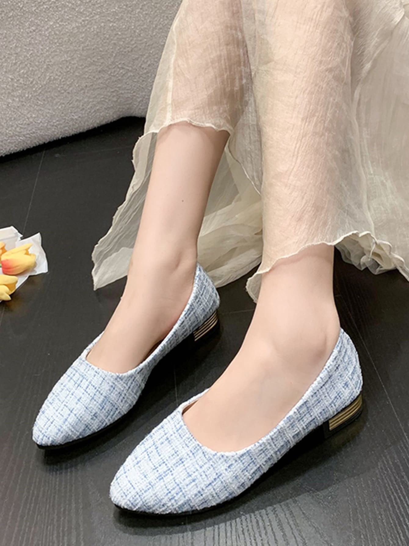 Flache Damenschuhe mit Karomuster und spitzer Zehenpartie, elegante flache Schuhe aus Polyester