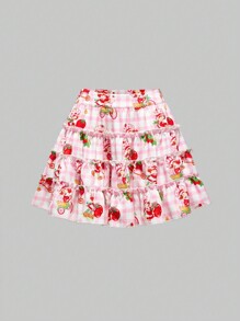 Damen karierter Erdbeerdruck Rüschensaum Mini-Rock