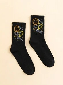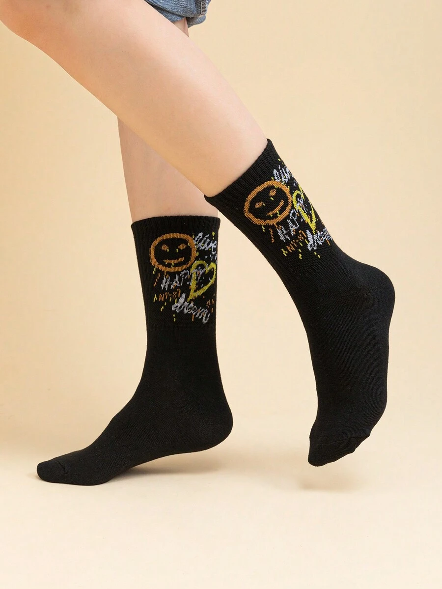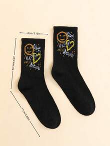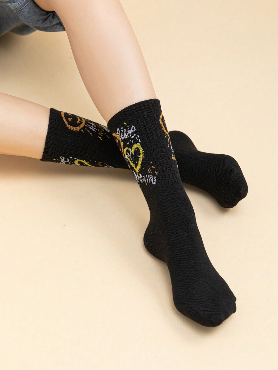 Bedruckte Söckchen Mit Lustigem Gesichts- Und Herzmuster Für Damen