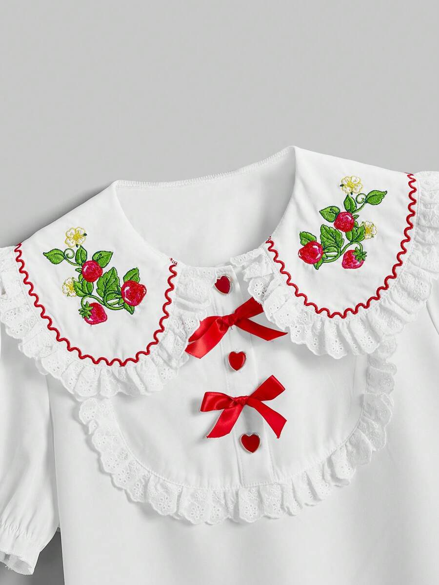 Damen Bluse im süßen Landhaus-Stil mit Erdbeerstickerei