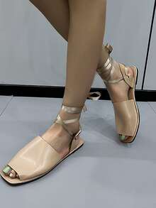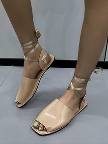 Damen Sandalen mit Beingurt Design, modische aprikosenfarbene Riemchensandalen