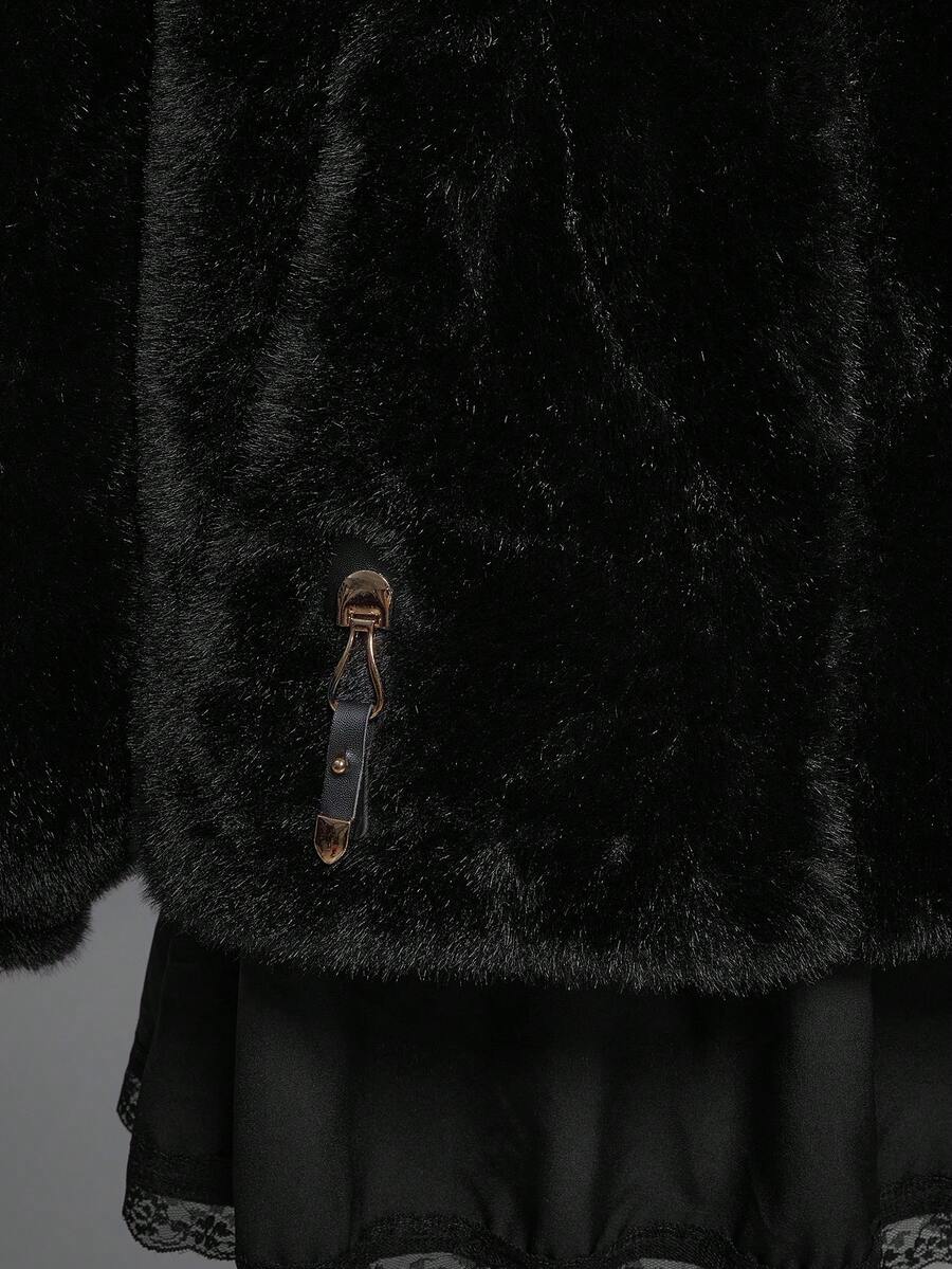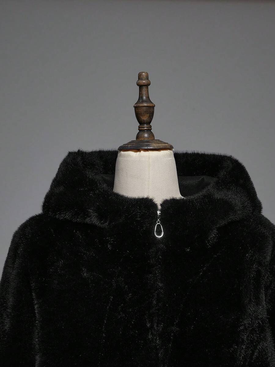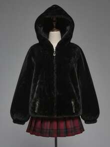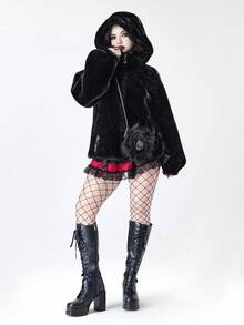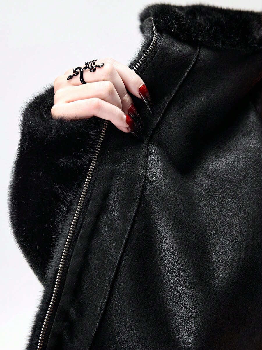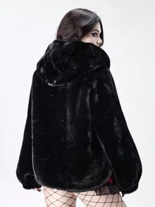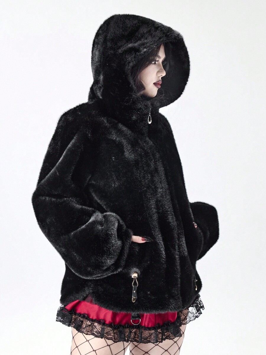 Damen Herbst/Winter Mode Dunkel Punk Stil Reißverschluss Kapuzen Jacke mit Kunstpelz