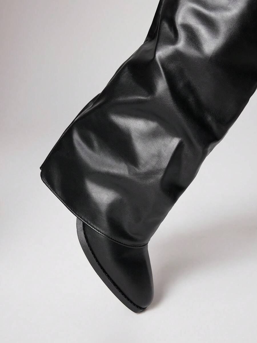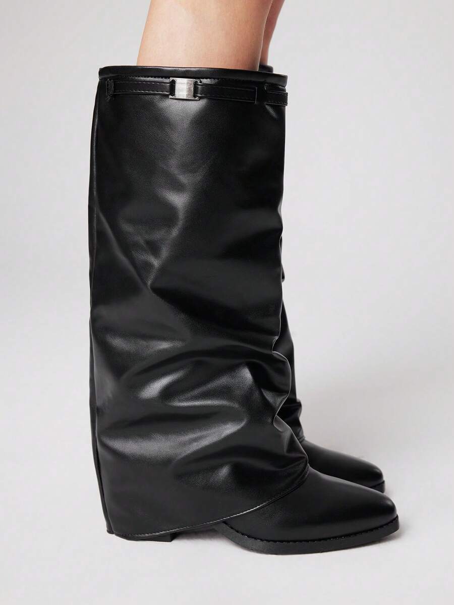 Damen schwarze geschlossene Zeh Niedrig Absatz Schnallen Motorradstiefel, Reitstiefel, Stiefel, Leder Kleiderstiefel, Rock Punk Stiefel, Schaftstiefel, Kniehohe Stiefel