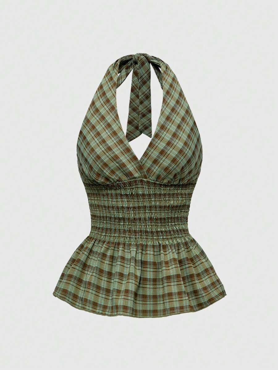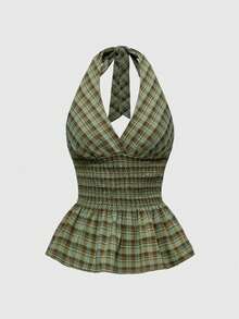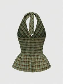 Damen Lässiges Retro Kariertes Tank Top mit gerafftem Saum
