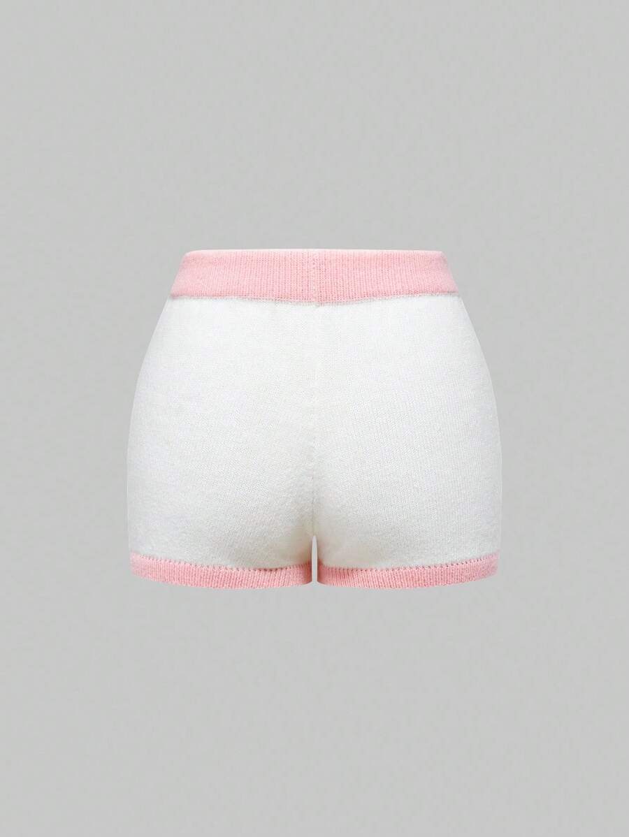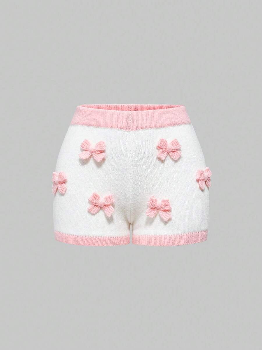 Damen süße rosa 3D Schleife gestrickte Shorts