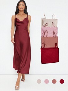Elegantes Satinkleid für Damen mit drapiertem Ausschnitt, lange Länge, geeignet für Hochzeiten, Business-Lässig, Konzerte und Hochzeitsgästekleidung