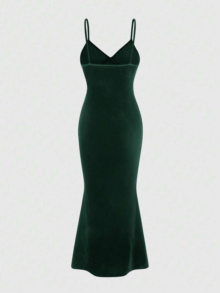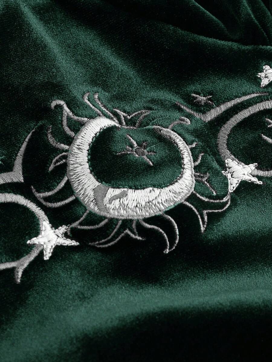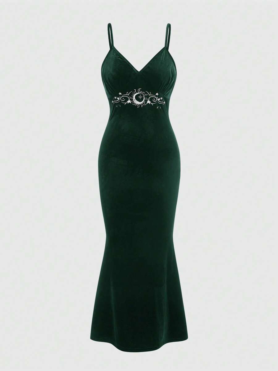 Damen tailliertes Meerjungfrau-Saum Taille besticktes Hippie-Samt-Kleid