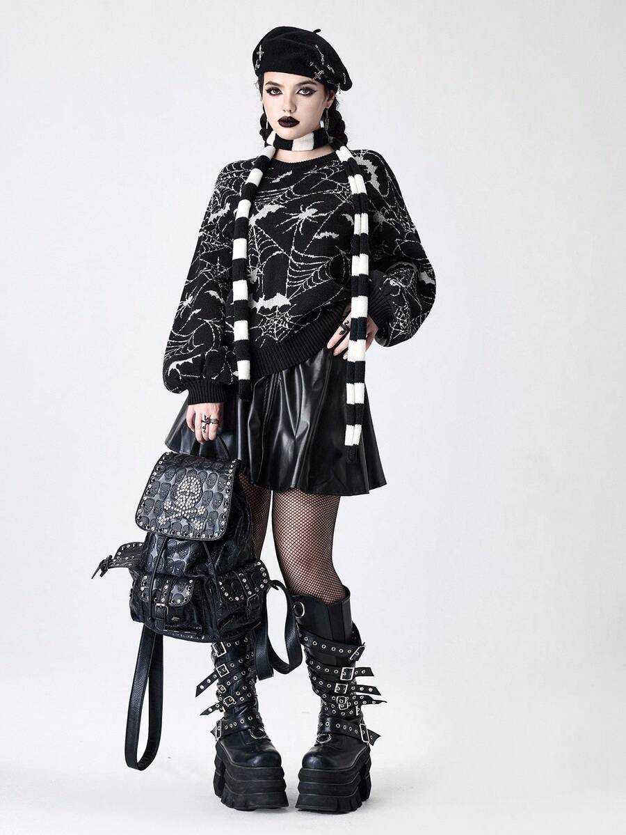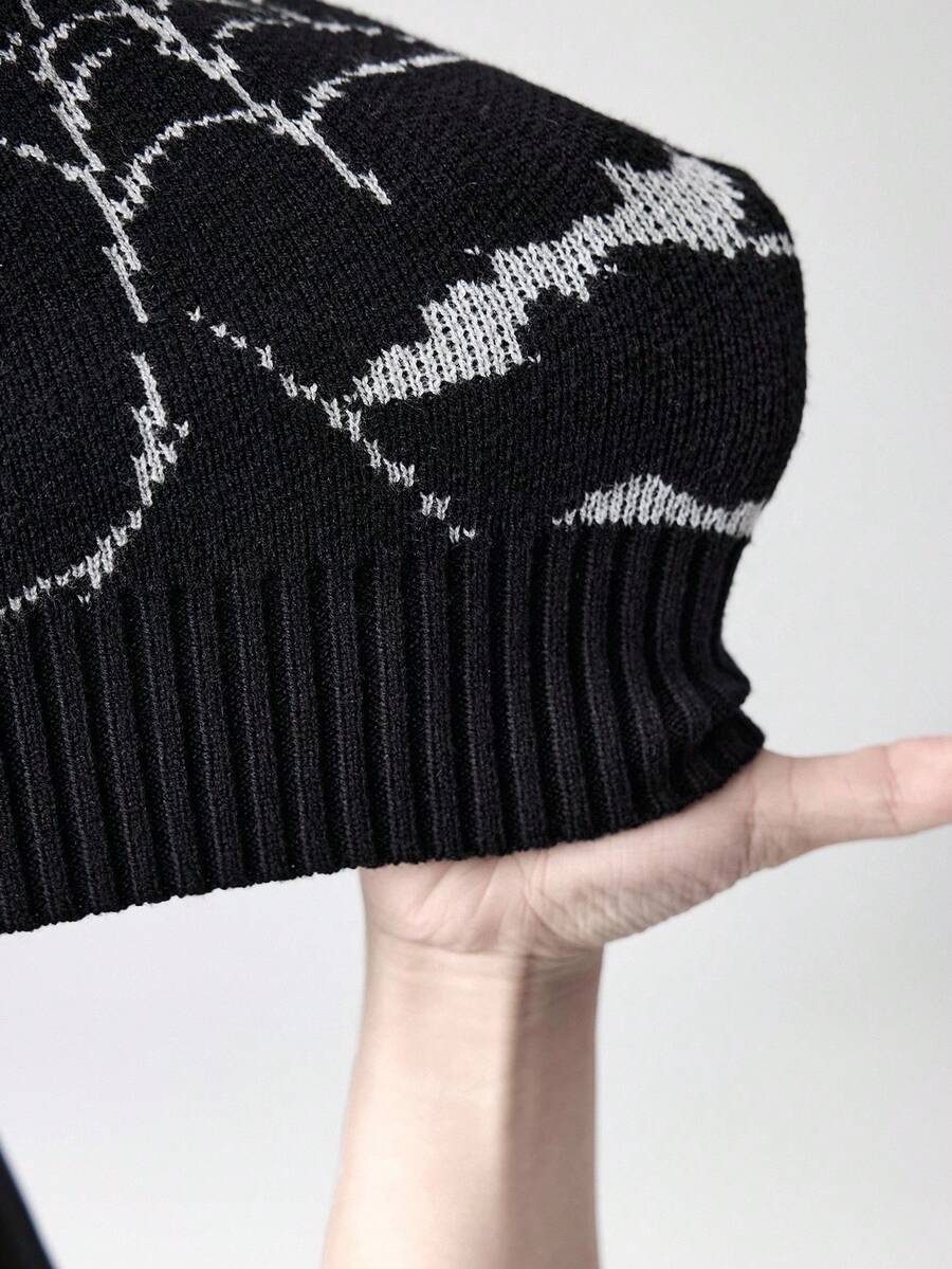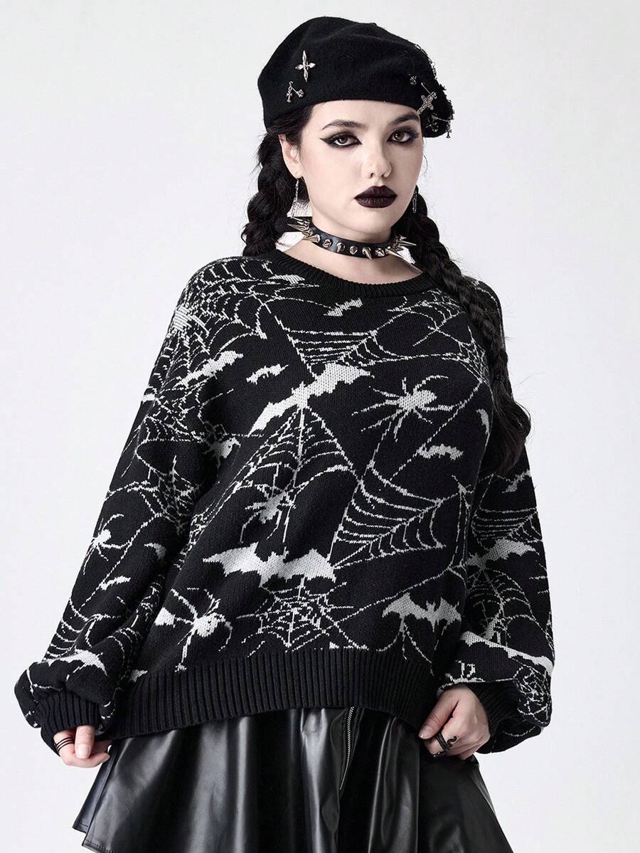 Damen Gothic Spinnennetz & Fledermaus Jacquard Muster Pullover