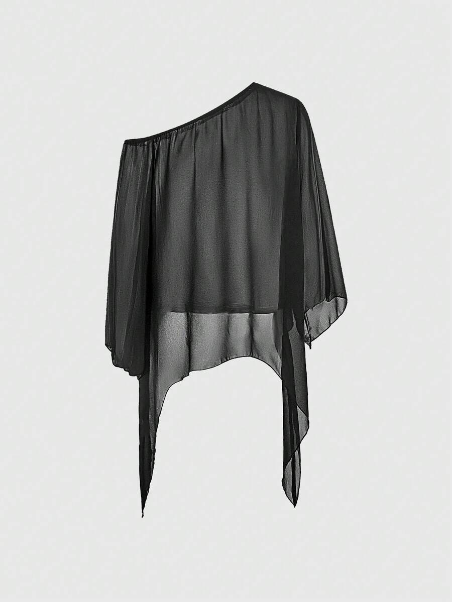 Damen Sexy Asymmetrischer Saum Transparente Schulter Top
