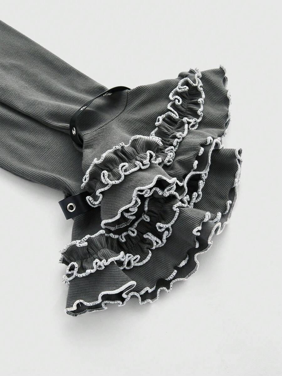Damen Flügel Bedrucktes T-shirt Mit Rüschen-ärmel Und Volant-saum