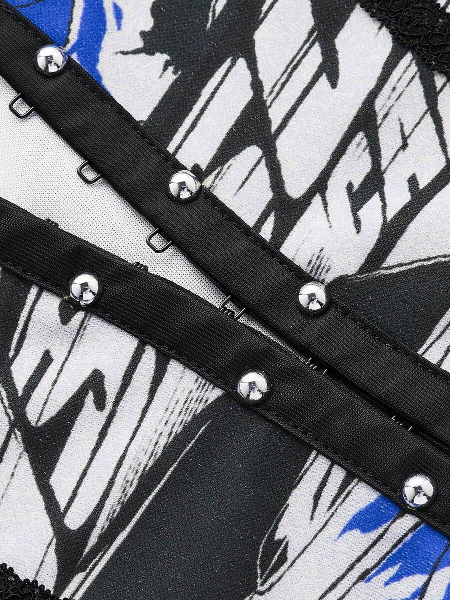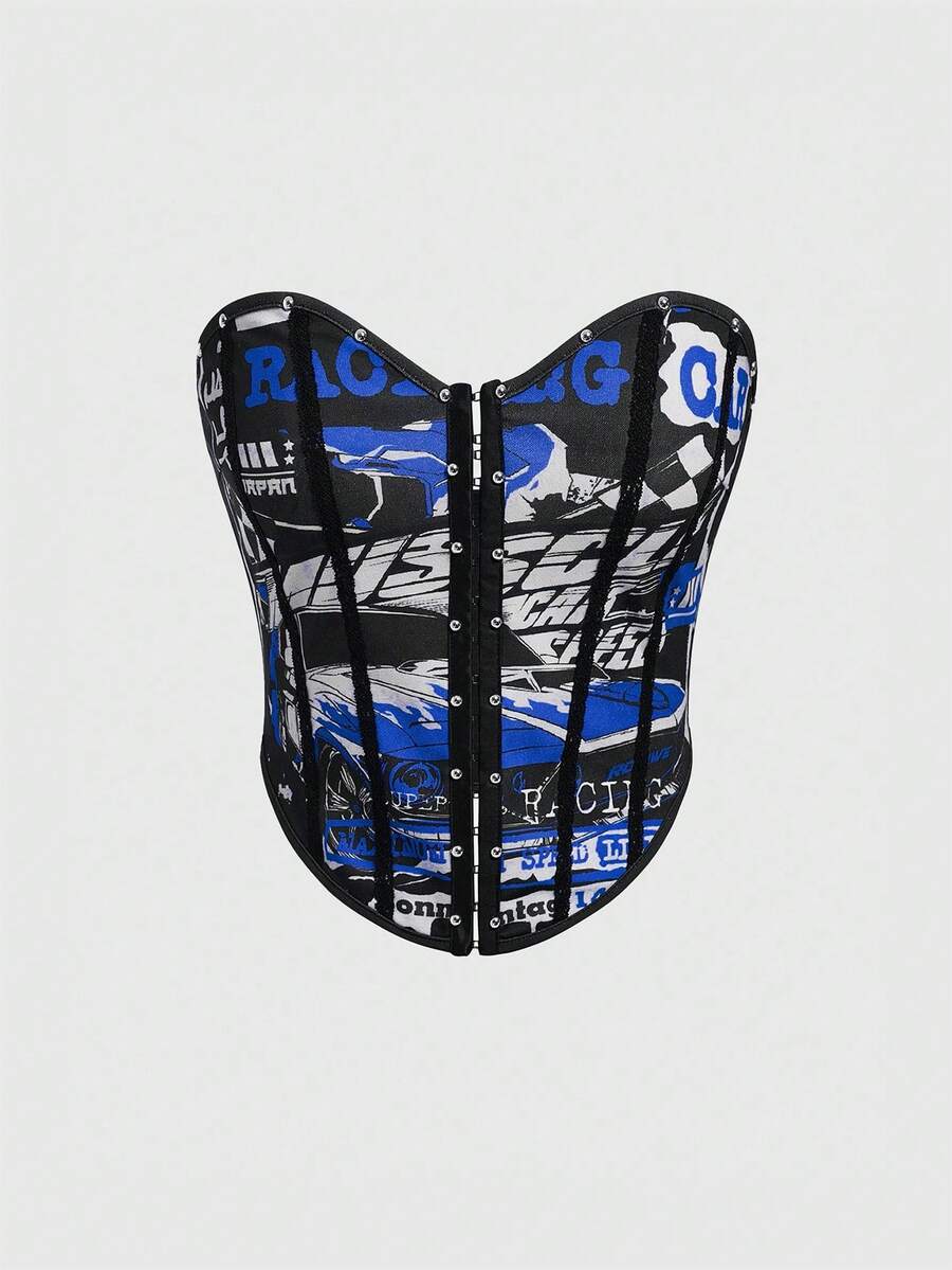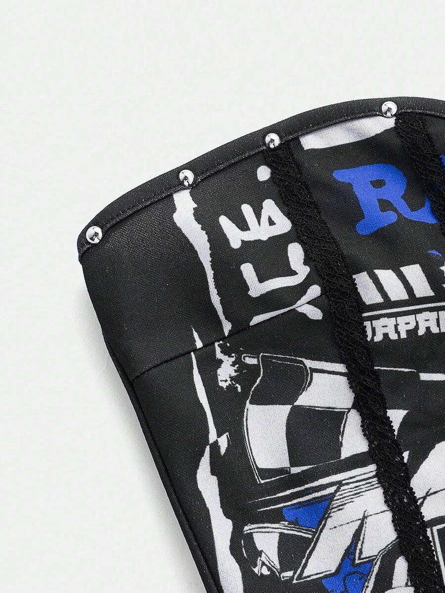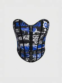 Damen Y2K Buchstaben-Muster Crop Top mit Knopfleiste vorne
