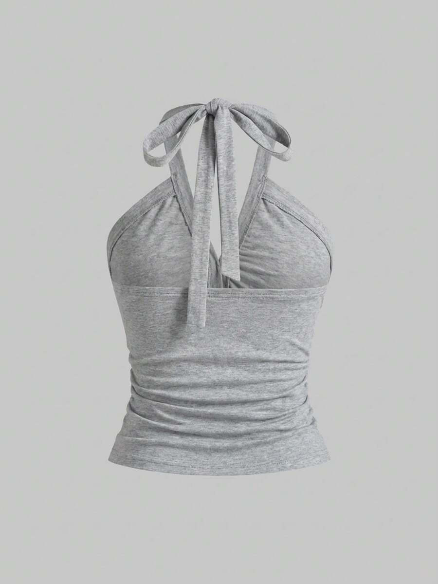 Damen Y2K sexy Trägertop mit Raffung und Kragen, kurz geschnitten