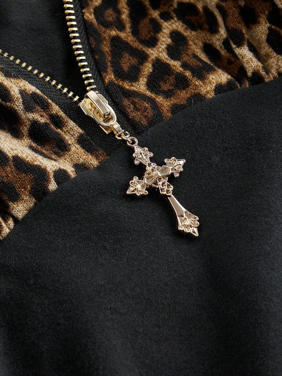 Damen Y2K Vintage Harajuku Stil Leoparden Muster Patchwork T-Shirt