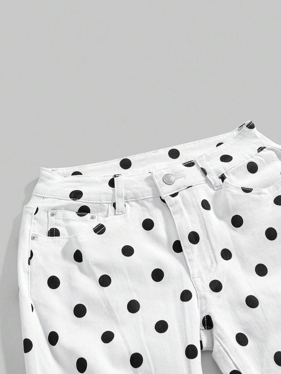 Y2K-inspirierte Polka-Dot-Jeans mit ultratiefem Bund und schmalem Schlauchbein im Stil der Französischen Riviera