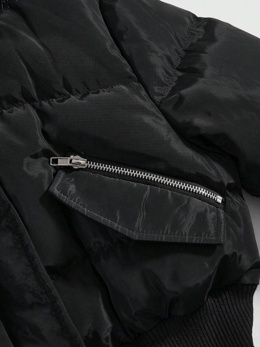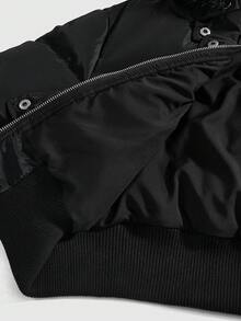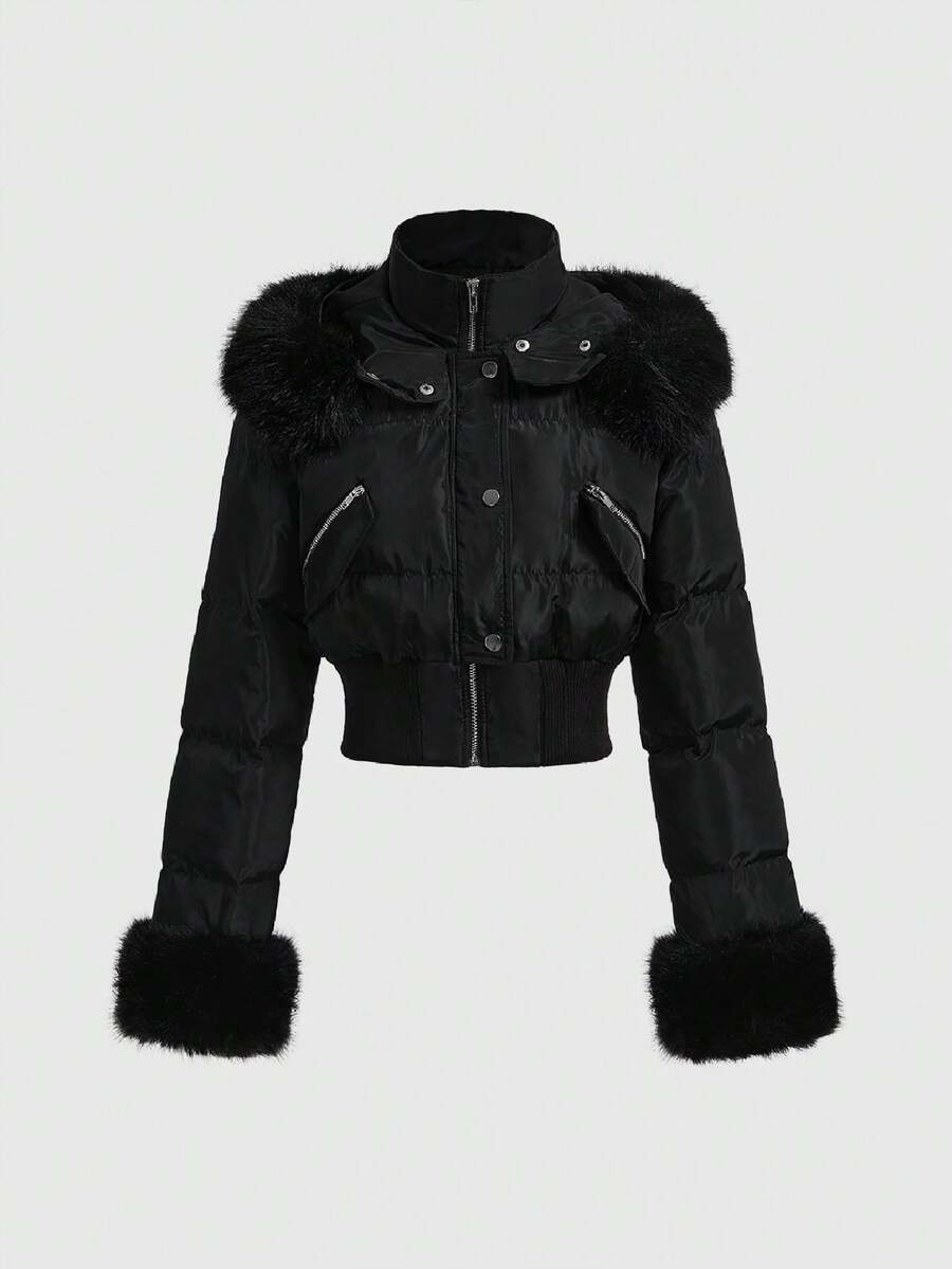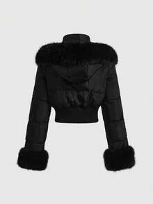 Y2K Kurzer gepolsterter Mantel für Frauen mit Strass- und Kunstfell-Verzierungen