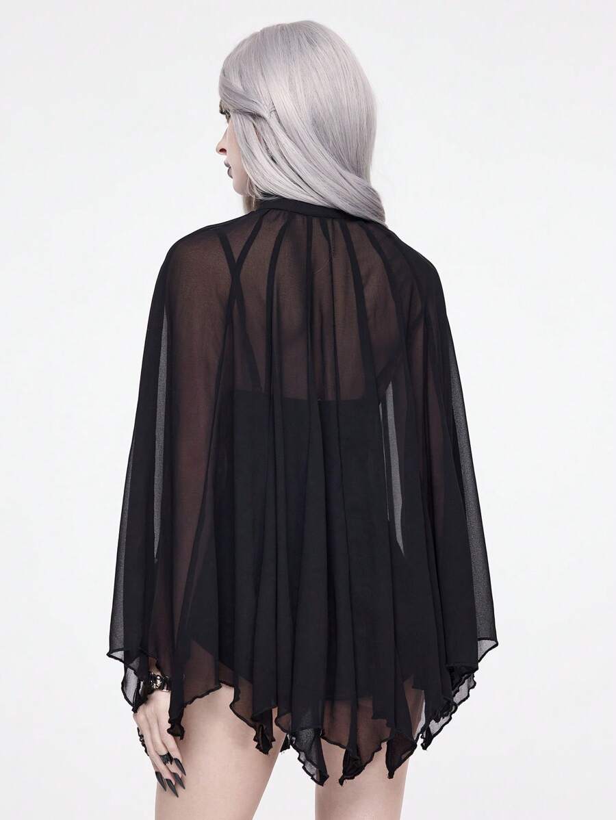 Y2K-Stil Beach Goth Fledermaus-förmige Mesh durchsichtige Strickjacke Bluse