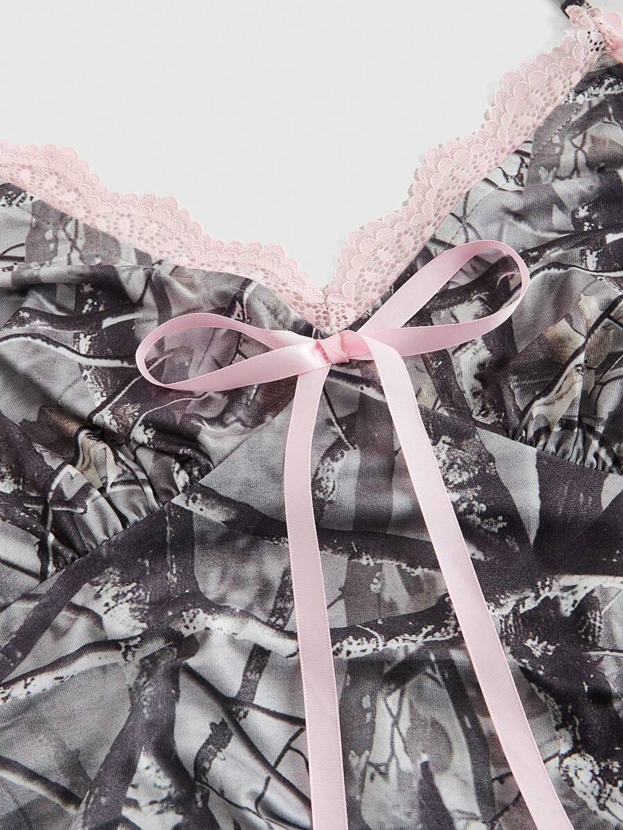 Y2K Stil Damen Camouflage & Kontrast Spitze Träger-Necktop