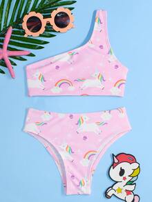 Kleine Mädchen Regenbogen Einhorn Bikini Set für den Sommer am Strand