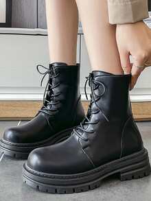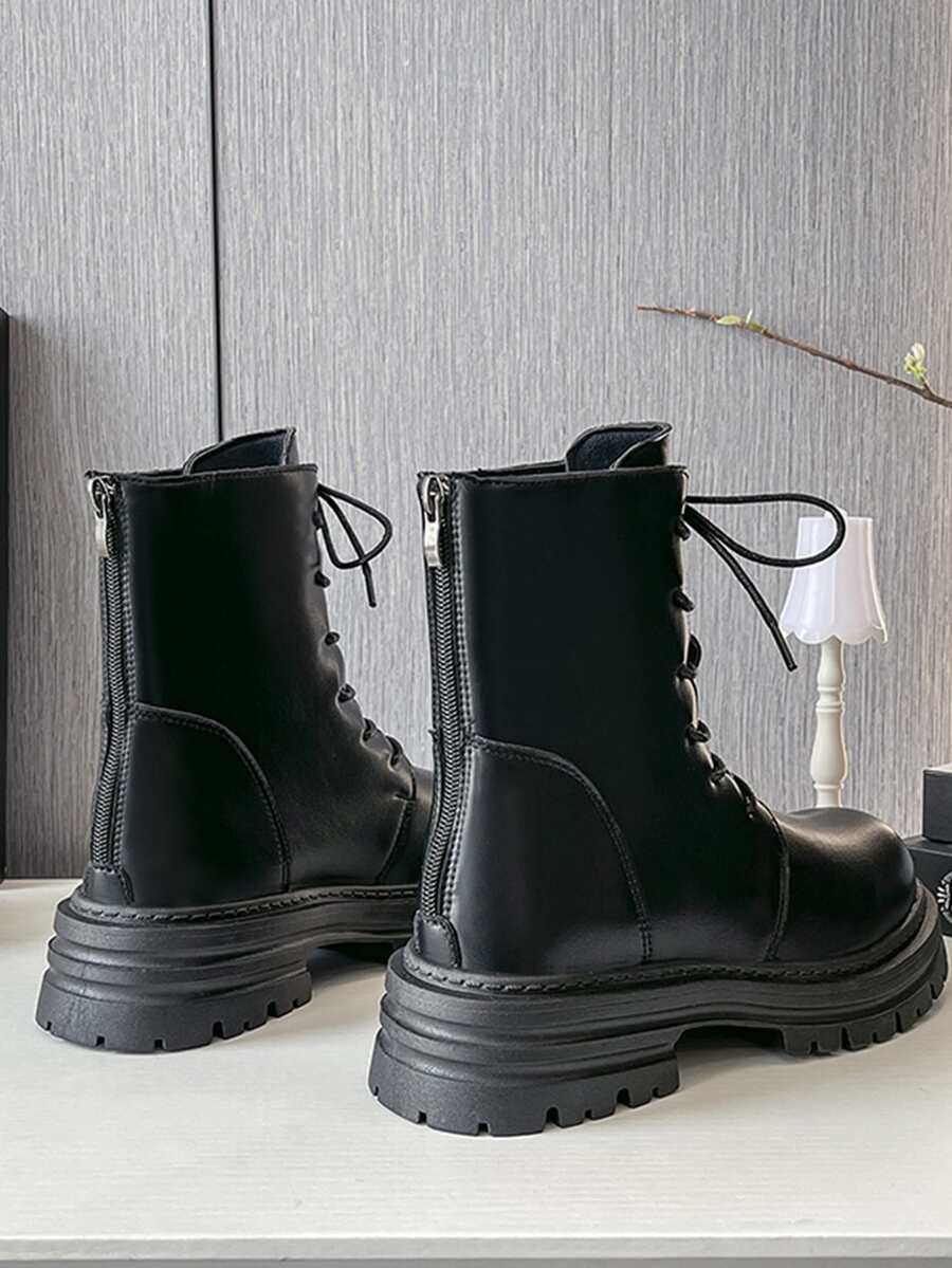 Kampfstiefel mit Reißverschluss hinten, Band vorne