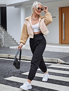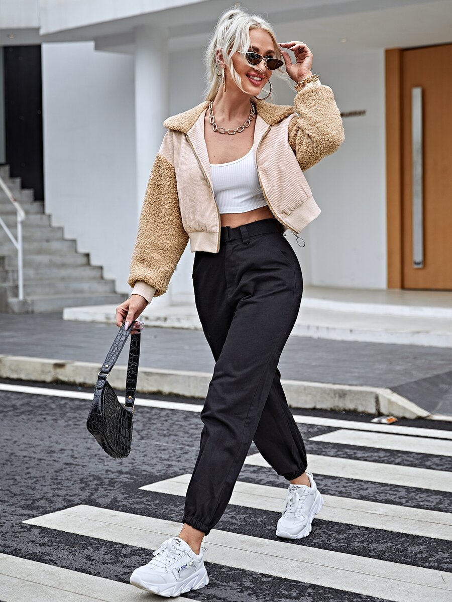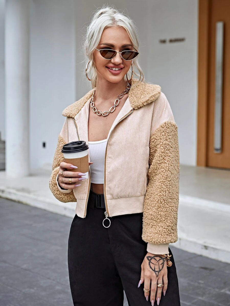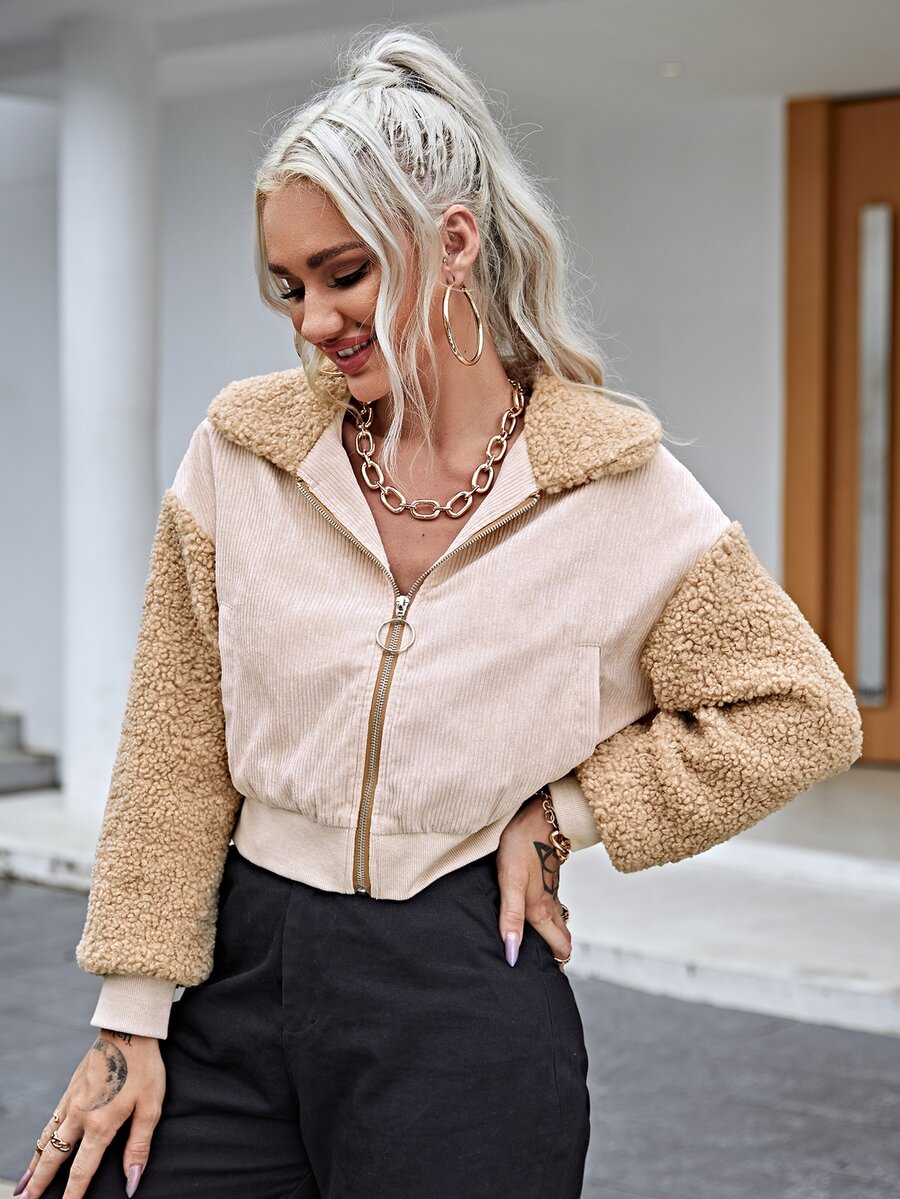 Cord Jacke mit Reißverschluss, Teddy Kragen und Ärmeln