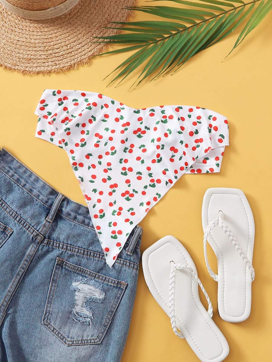 Tube Top mit asymmetrischem Saum und Kirschen Muster