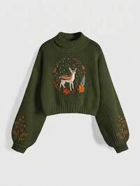 Fairycore Große Größen Pullover mit loser Strickstruktur und Pilz-Stickerei Motiv