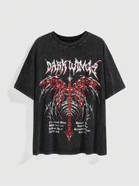 Grunge Punk Damen Große Größen T-Shirt mit Buchstaben-Muster, Rundhalsausschnitt, Kurzarm, lässig und locker geschnitten