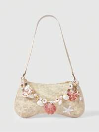 Fairycore 1 Stück Sommer Strand Seestern Serie Muschel & Muschelgeflecht Schulter Handtasche, Strandtasche, Strohtasche für Frauen (Charme Farbe & Stil zufällig), Sommer