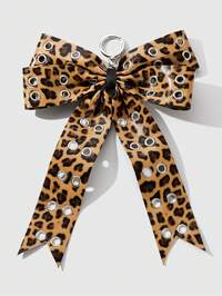 Kawaii 1 Stück modischer, retro personalisierter Acryl-Stern-Blumen-Schlüsselanhänger mit braunem Kunstfell-Leopardenmuster und Herz-Schleife, geeignet für Frauen, Alltagsmode, Urlaubsgeschenk