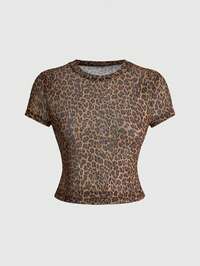 Y2K Vintage Leoparden-Muster Mesh transparentes sexy Crop Top für Frauen