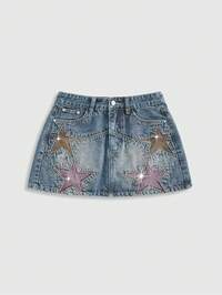 Grunge Punk Damen Jeans mit Taschen, Knöpfen, Buchstaben- und Blumen-Strass-Dekor, vielseitig für den täglichen Gebrauch, weites Bein