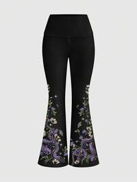 Dunkel Gothic mysteriöser Garten Frühlings Schlange Hippie Pflanze Sonne Mond Stern Schwarz Sexy Süß Taillenbund Damen Hose