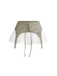 PU & Mesh Patchwork Nieten Schnürung Damen Mini Rock