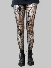 1 Paar Damen Schwarze Gothic Jacquard Netzstrümpfe für alle Jahreszeiten, Halloween