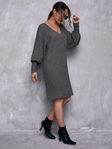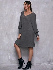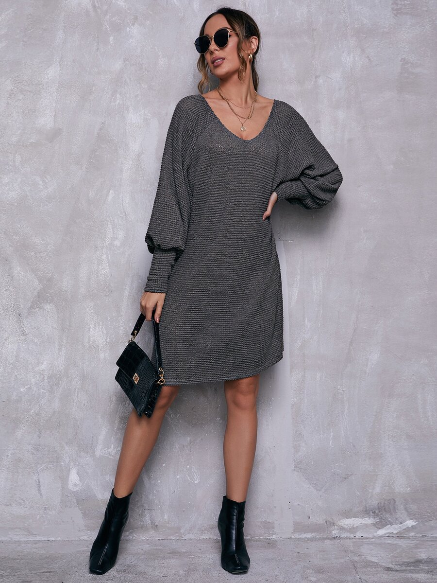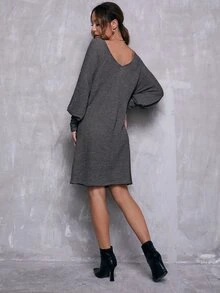 Texturiertes Strick Kleid mit Fledermausärmeln