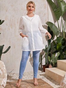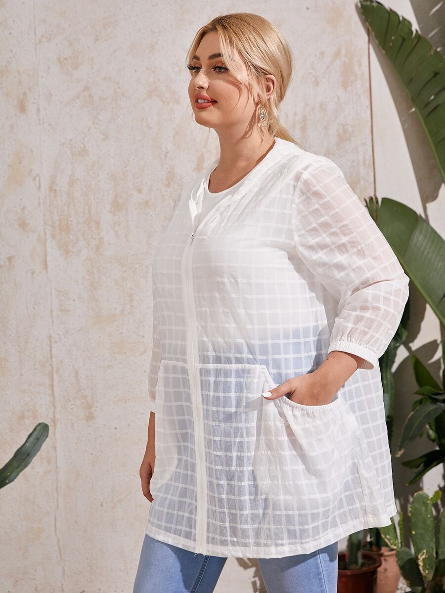 Semi transparenter Mantel mit Reißverschluss, Taschen vorn und Kapuze