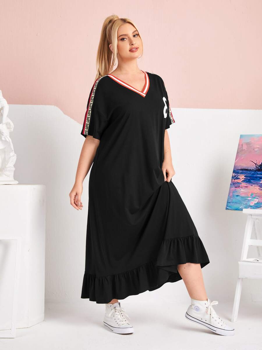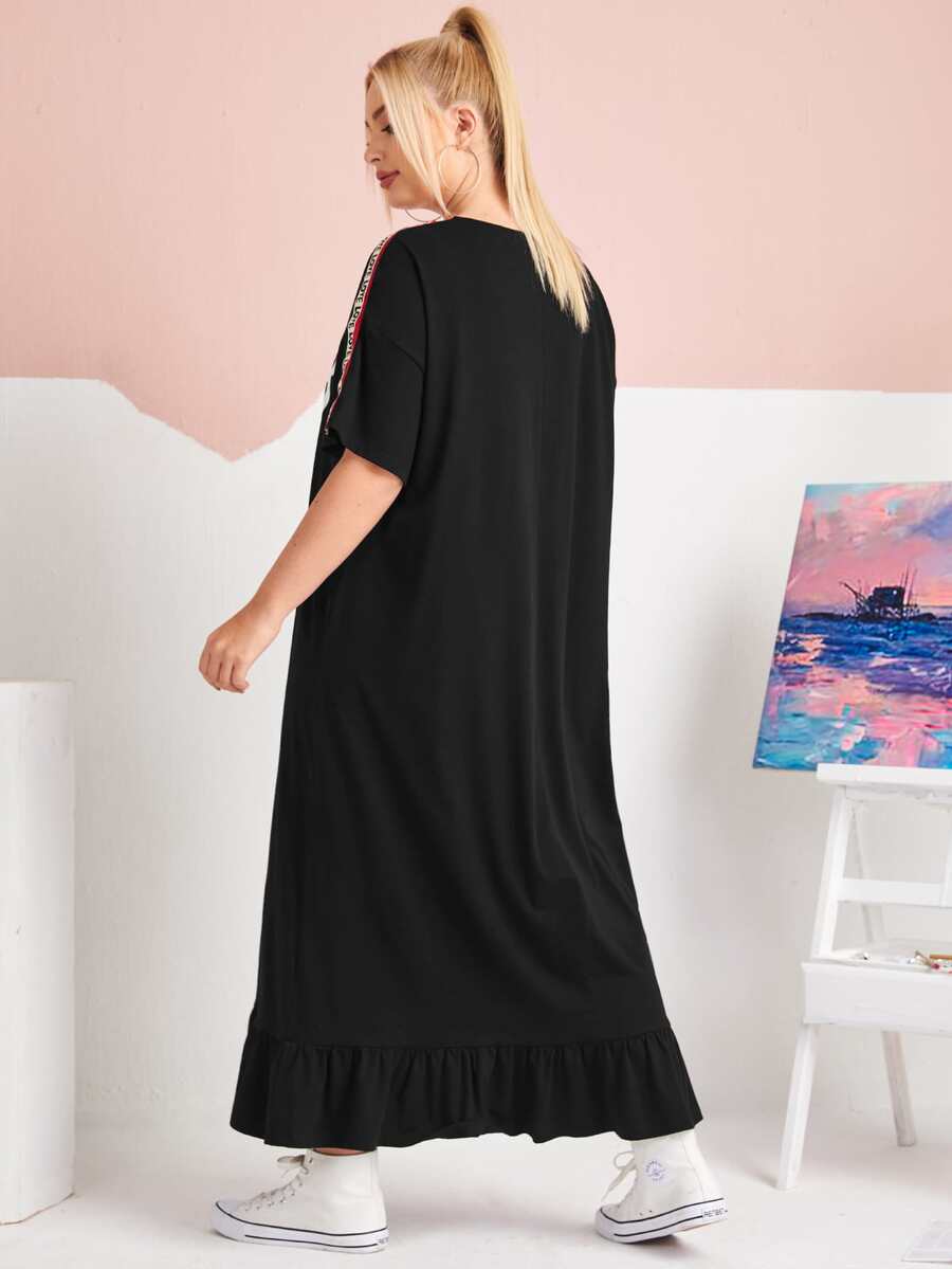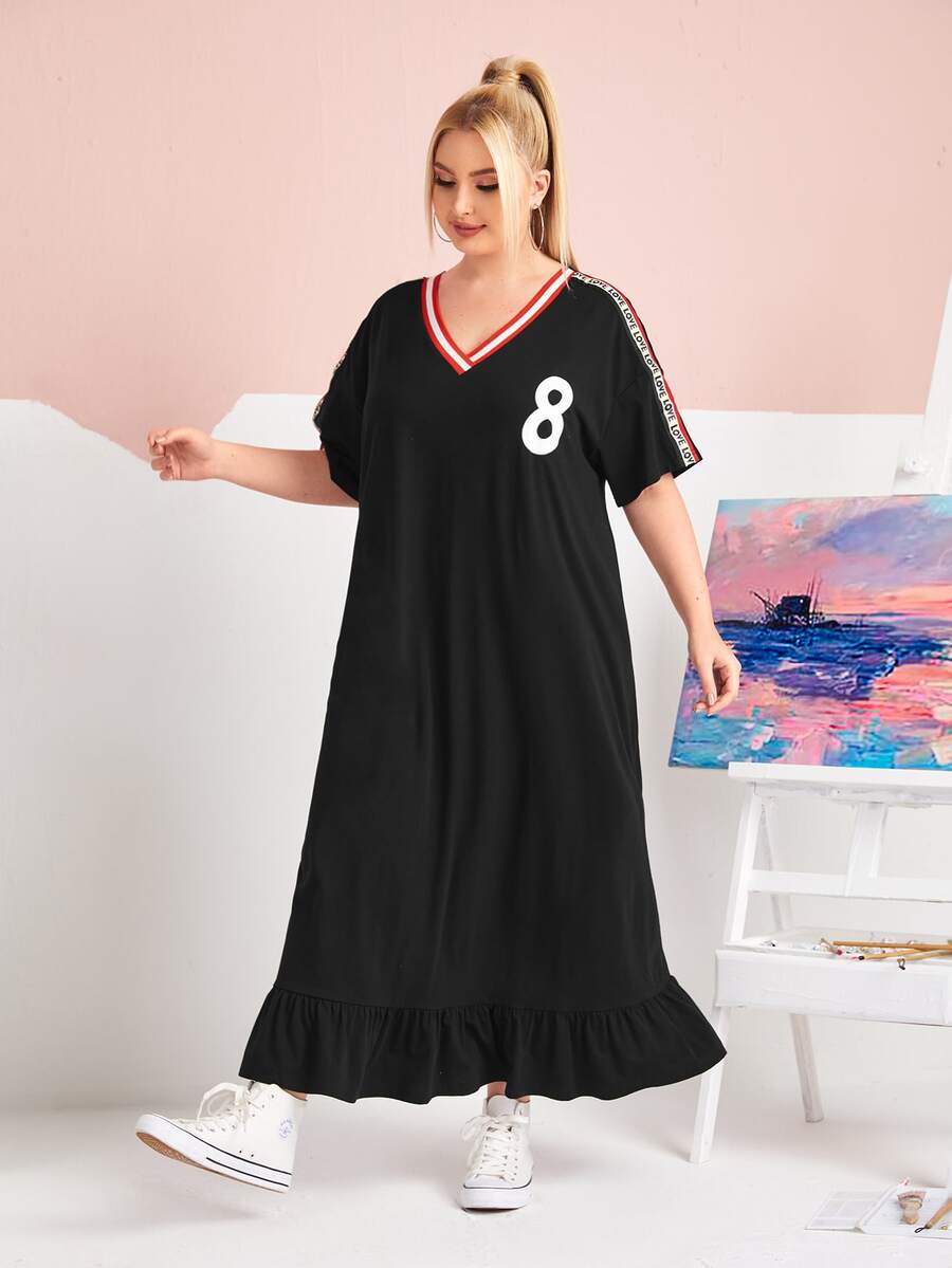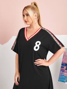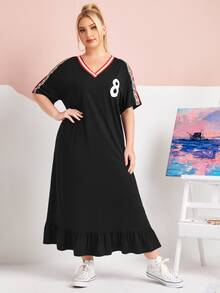 Kleid mit Streifen am Kragen und Buchstaben Band auf Schulter