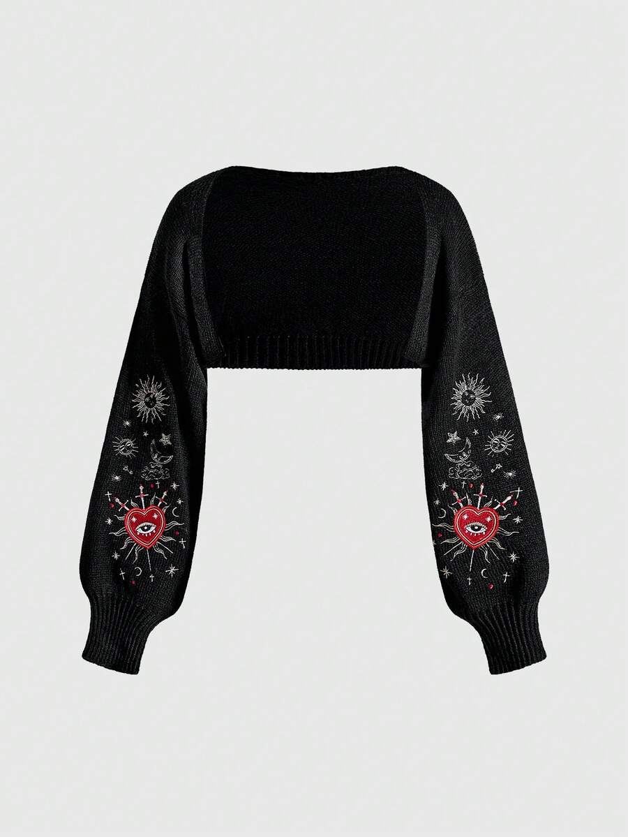 Fairycore Vintage romantischer Sonne- & Stern-Stickerei eleganter Damen-Cardigan