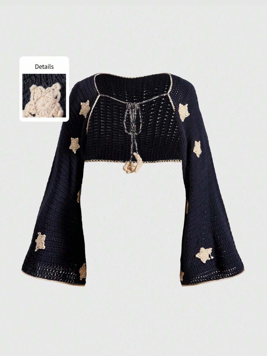 Hippie Vintage Astrologie Sternenmuster Strickjacke in Große Größen mit langen Ärmeln und Crop-Schnitt, Herbst/Winter