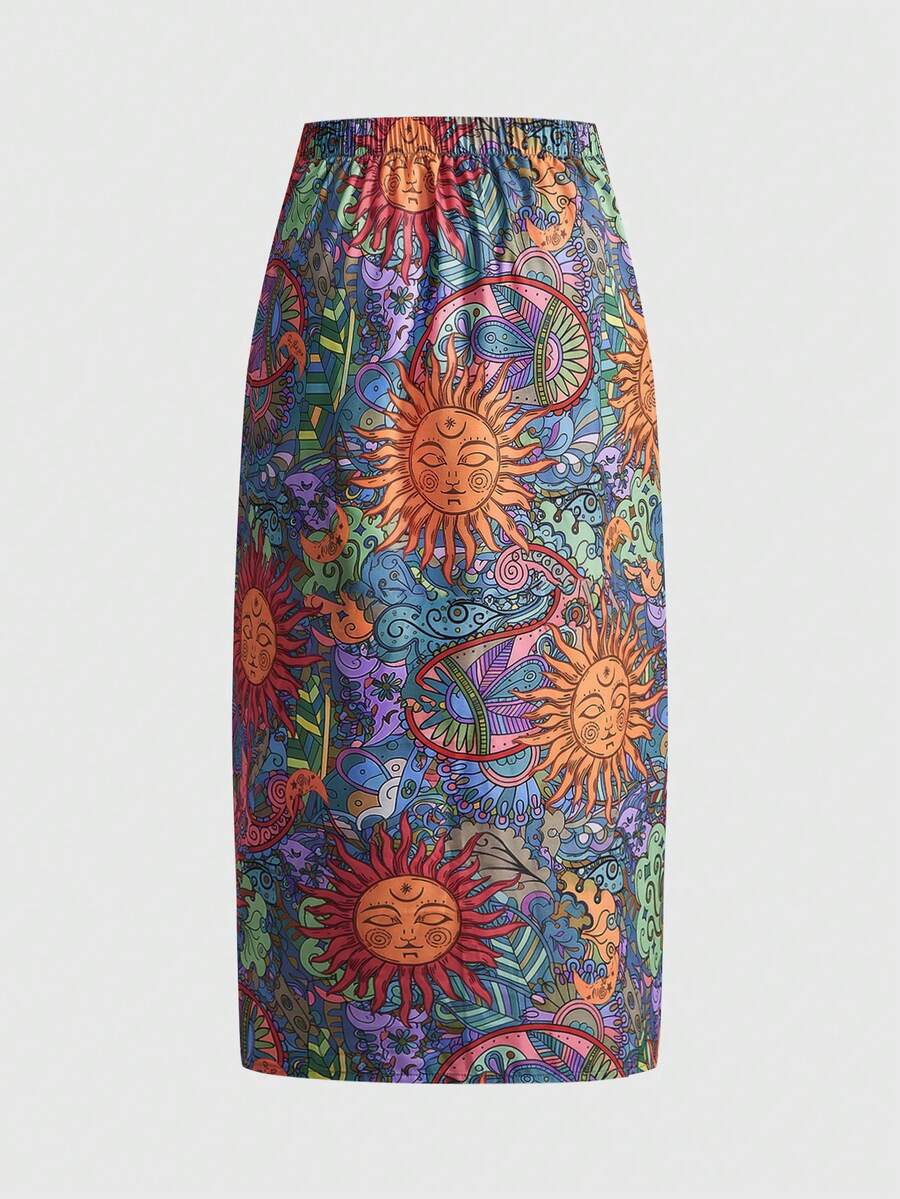 Hippie Große Größen Lässig Retro Allover-Muster Hoher Schlitz Rock