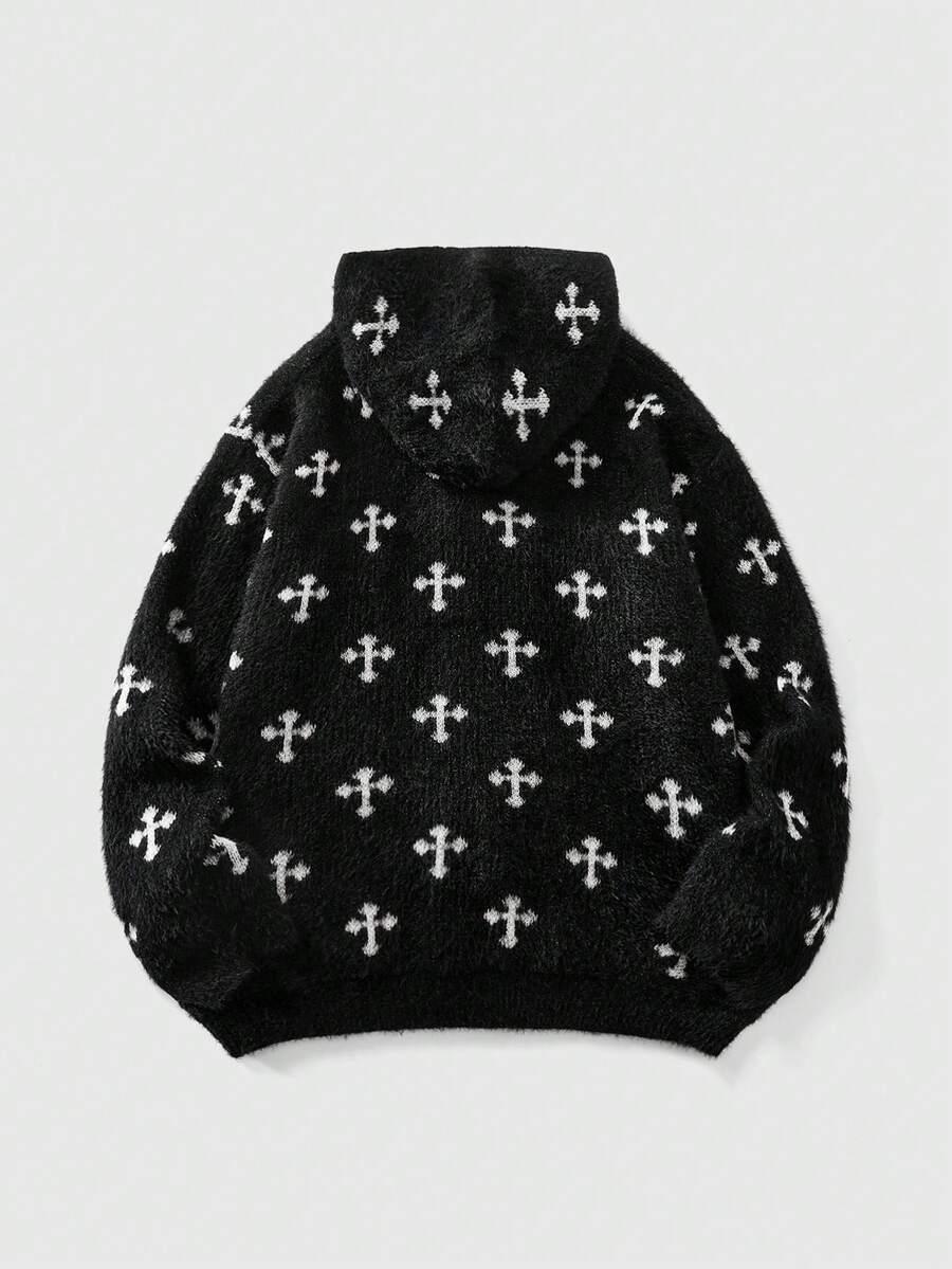 Goth Herren Vintage Dunkel Kreuz Muster Reißverschluss Kapuzen Strickjacke