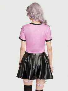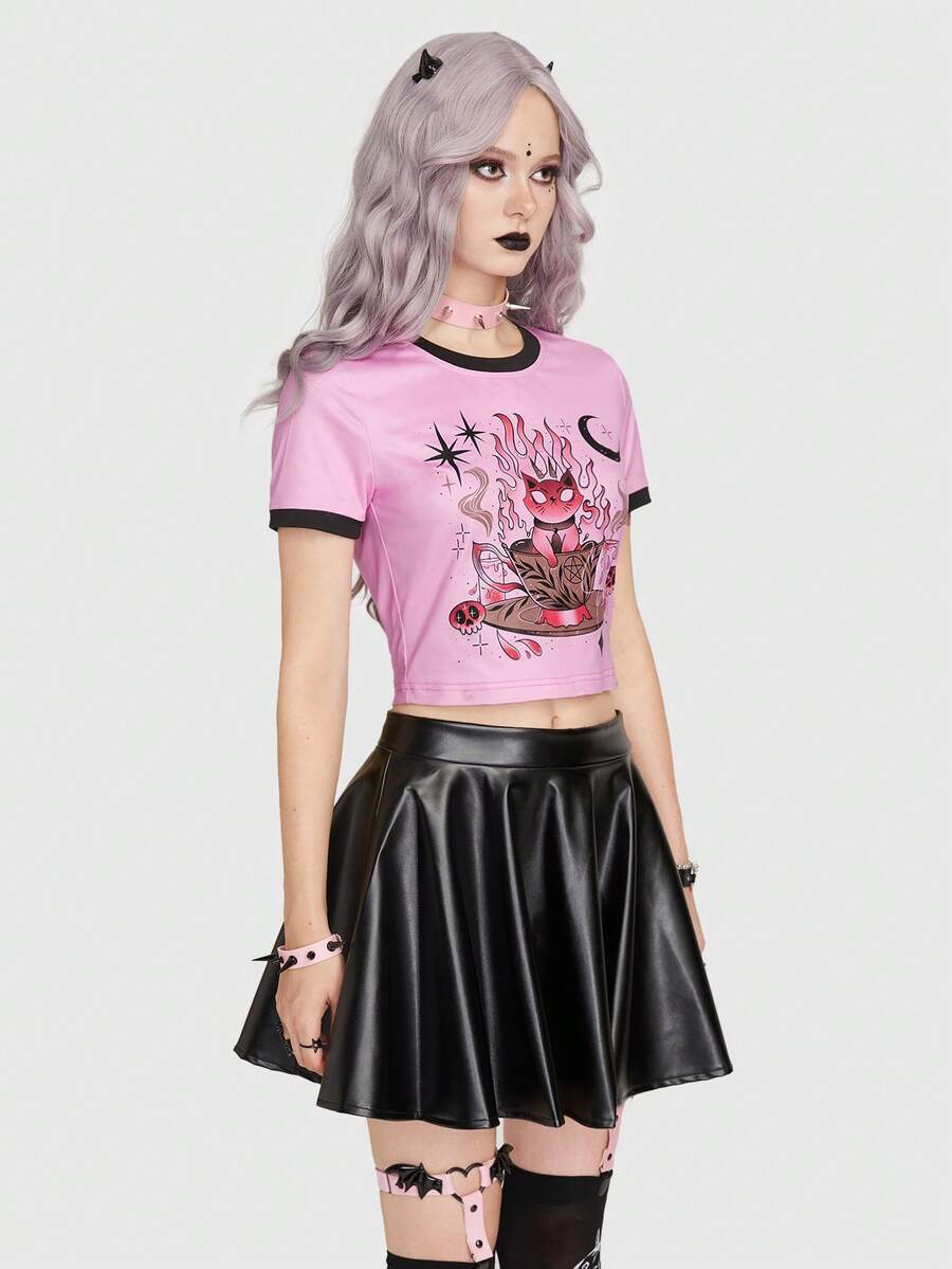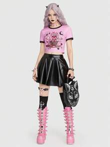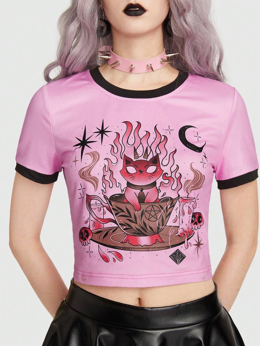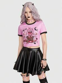 texdoodles Crop T-Shirt mit Cartoon Grafik, Kontrastsaum,